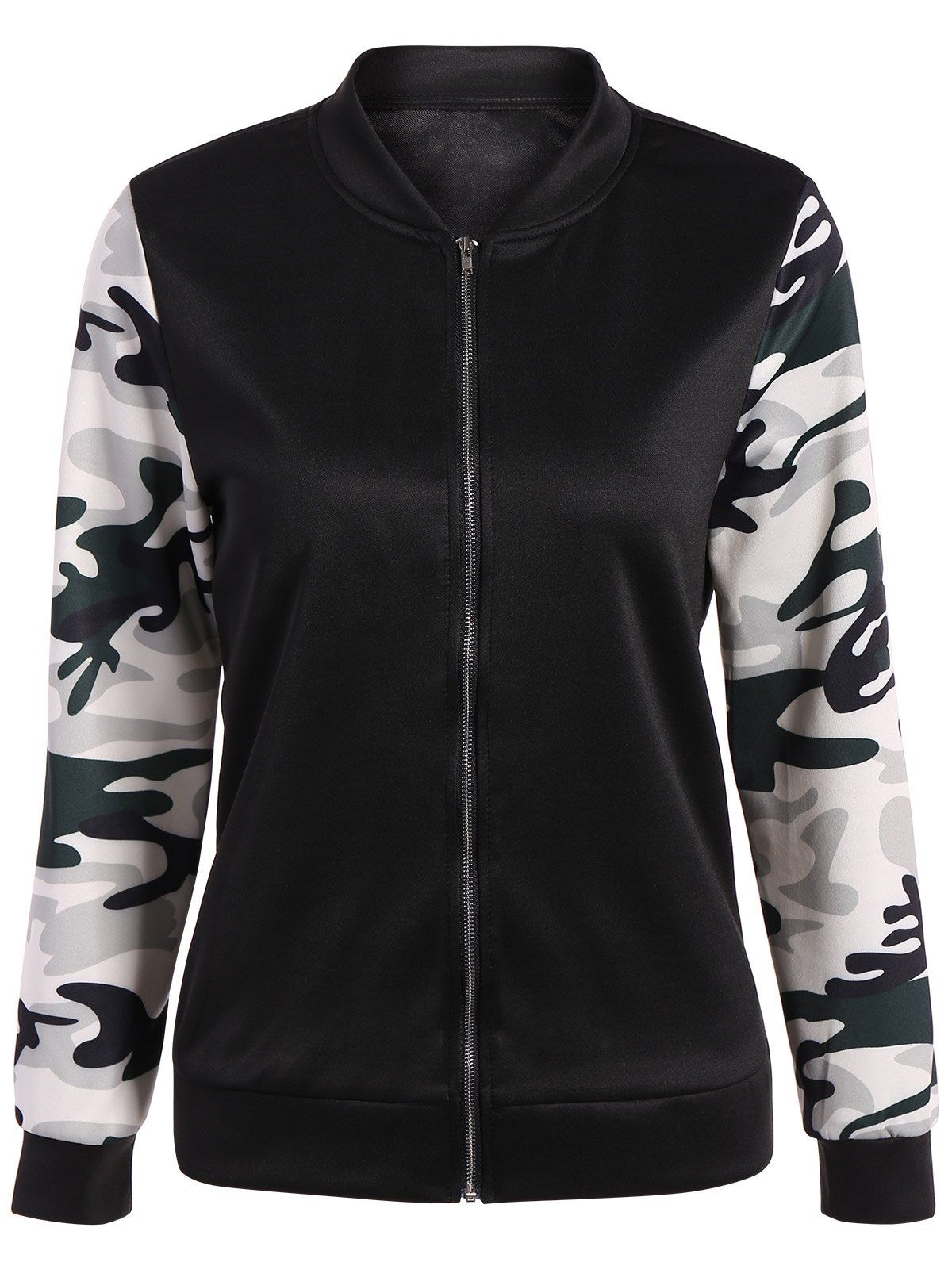 Camouflage Panel Zippered Bomber Jacket Discounted at only: US$ 14.6