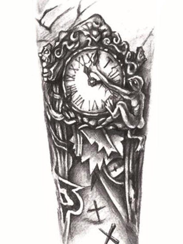 Clock Crucifix Pattern Tattoo Sticker Discounted at only: US$ 2